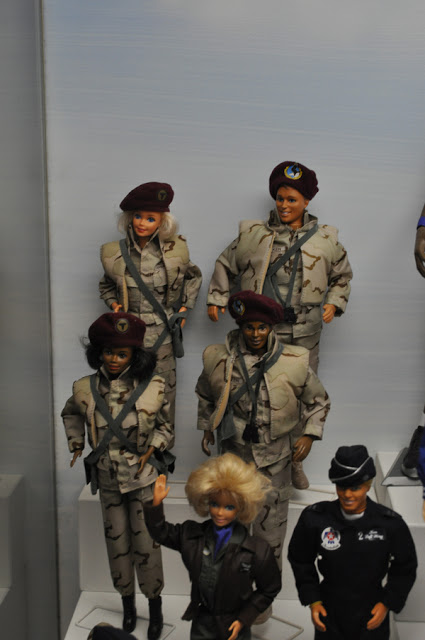 Whether you choose to give your child a doll which encapsulates a reductive feminine stereotype or not, there’s no denying that Barbies have become more heavily sexualised and pinkified in recent years. If you don’t believe me, go to the Toy museum in Prague, which is where all these pictures are from (there is also a wonderfully incongruous Polar Bear placed haphazardly amongst a First World War Battle Scene). It’s an often quoted maxim that Barbies would be unable to stand up if they were blown up to lifesize proportions, and I don’t know whether this is true or not, but the metal stand rammed up the posterior of the one in the Toy Museum that I made my boyfriend stand next to implies not.