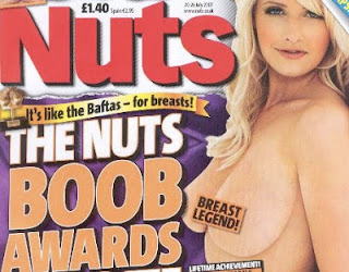 In its own way, this is a sort of wildly sexist, socialist triumph. It’s a real leveller – celebrity, model, TV reality star, bedroom babes, lesbians – they’re all the same once they’ve got their nipples on display. I struggle to believe Nuts editors think this many nipples is what young men want (I fall within their age bracket and I was nippled out by about page 20) – though it’s not unthinkable. And if they do, it’s a damning indictment of male magazines when all they use to fill more than half their magazine is the lowest common denominator. Perhaps one of the reason its circulation has plummeted is the vague contempt with which it treats its readers. Much of this blog might seem like a consideration of how Nuts views young women – I don’t think much considering needs to be done there (more than half the pages in the mag have a lingerie-clad girl splayed across them) – but it’s not. The glut of nipples and the literature which surrounds them is exemplary of the values Nuts expects from and projects on its readers.