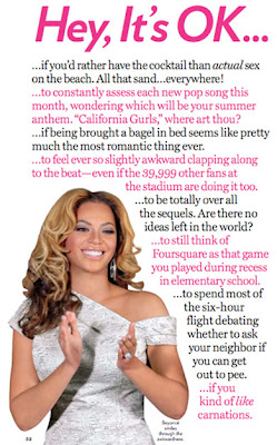 Glamour magazine provides a monthly list of the things it is ’ok’ by them, to do. You have their permission, they’ll turn a blind eye to your fucking female wiles as long as you don’t make a habit of it!